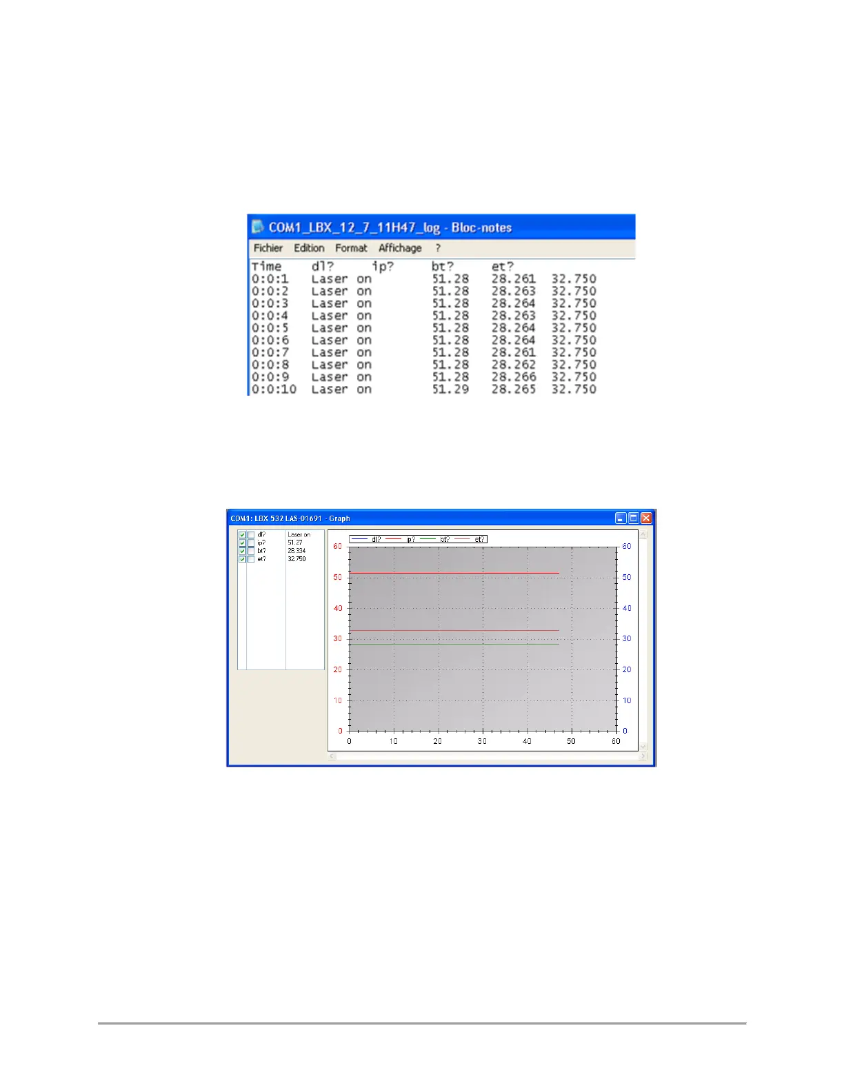 It is also possible to visualize the logged parameters in real time using the “Graph” button in the command