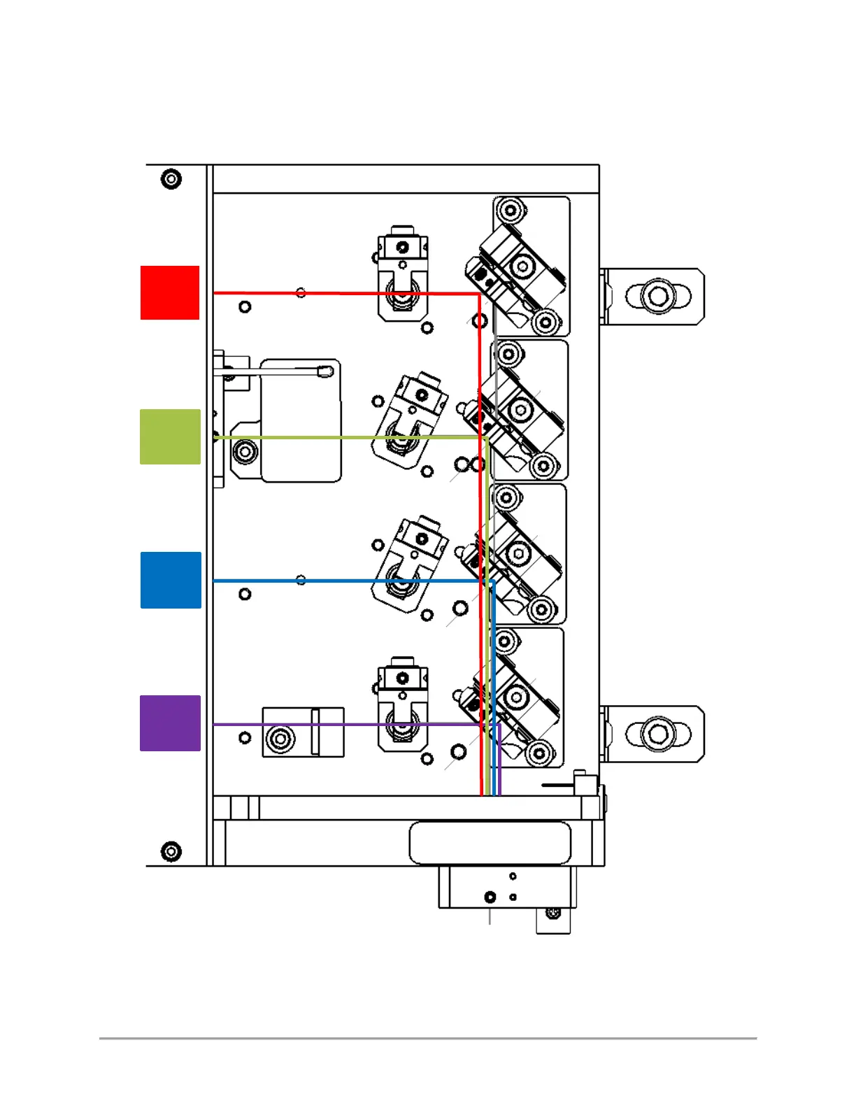 Figure 8-2: Layout of the laser bench with optical beams down to the fiber coupler