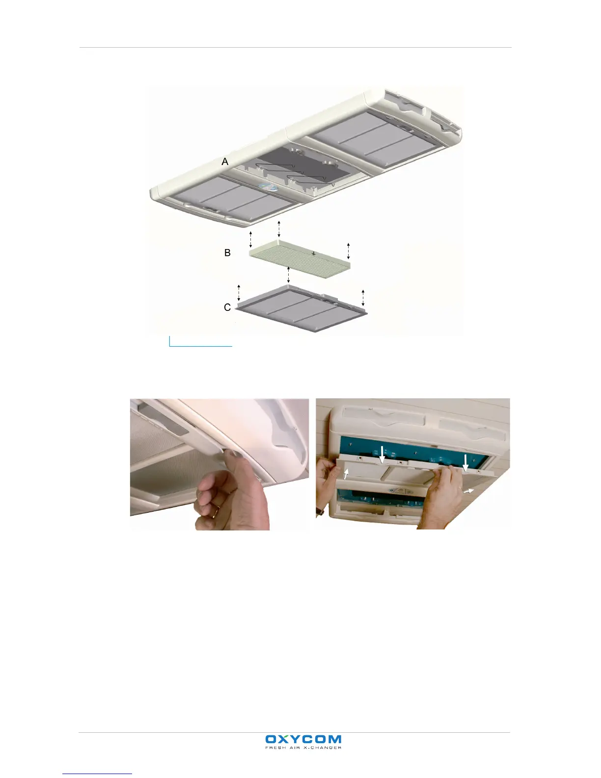 Figure 4.2 OXYZONE with air filter (B) and screen frame (C)