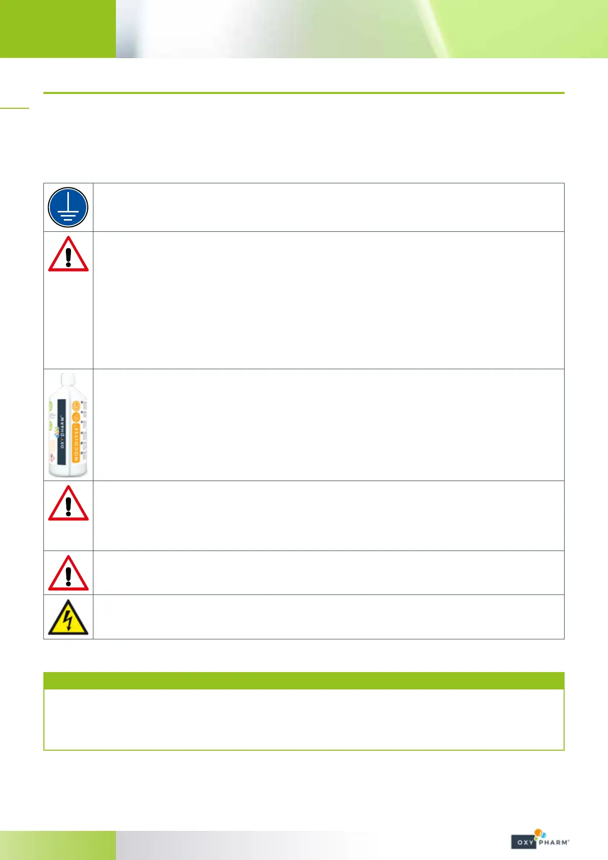 Any electrical intervention on the device must be performed by an approved technician. OXY'PHARM provides