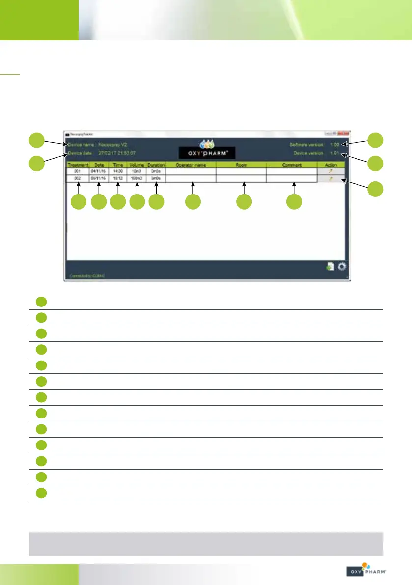 Anmärkning: Texten ”Connected to COM4” nere till vänster visar att Nocospray 2 är ansluten.
