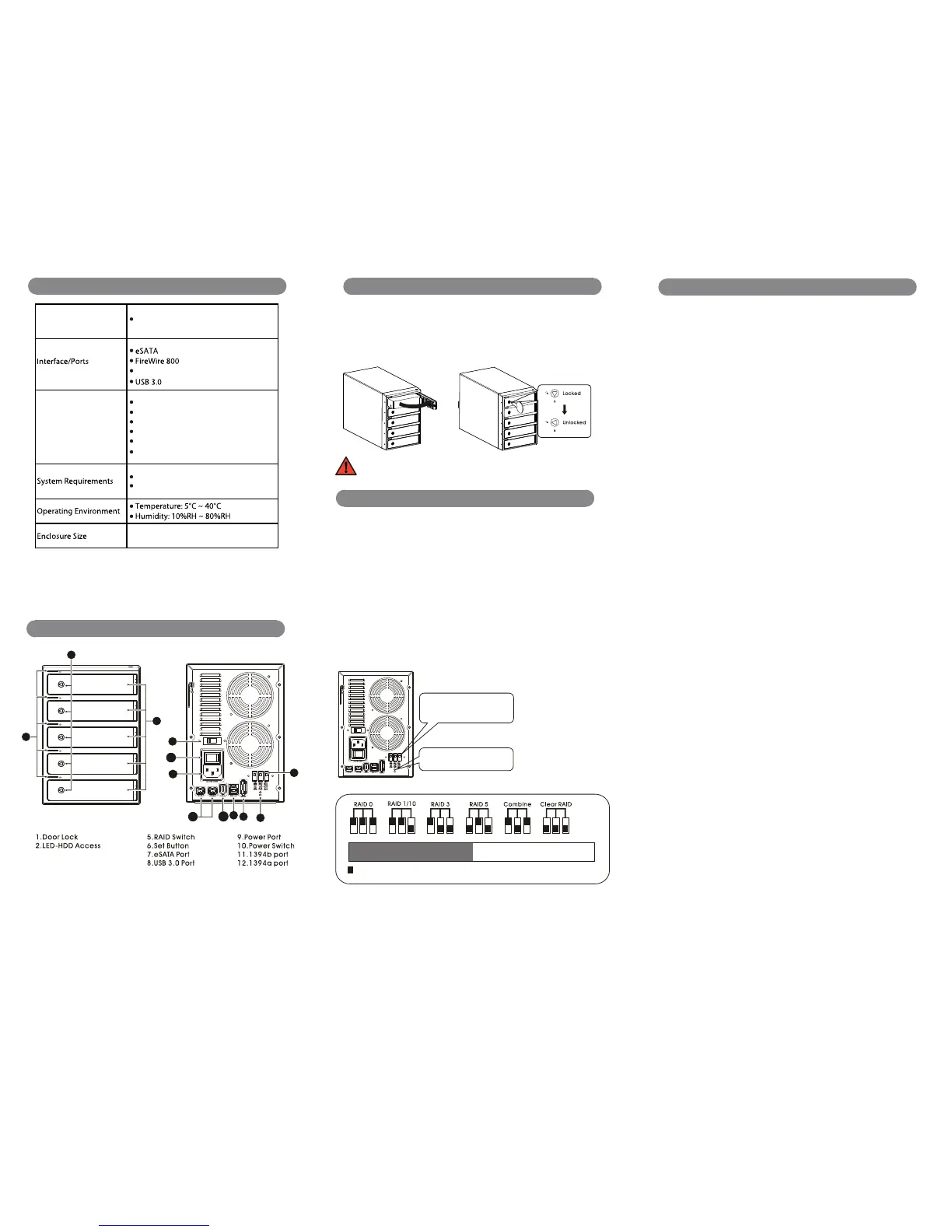 • 3 or more drives are required. If hotspare is desired, insert 3 or 4 drives