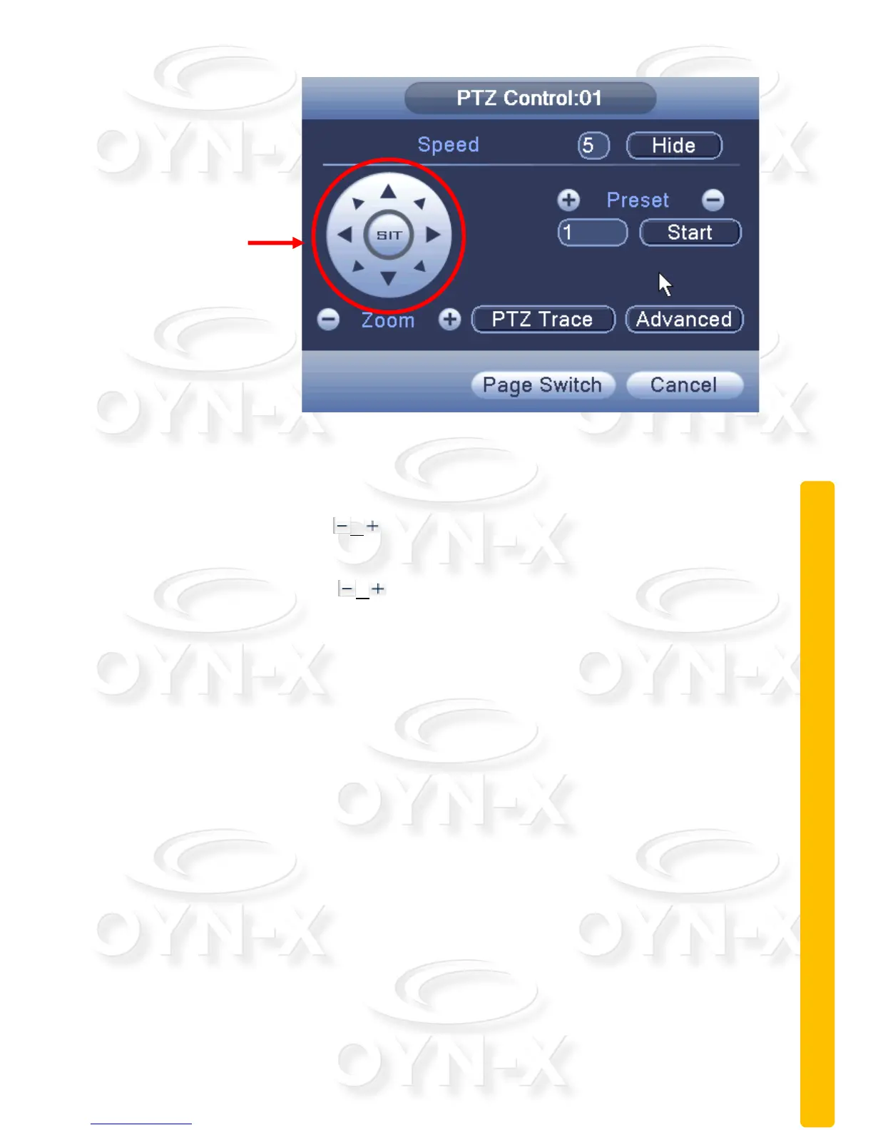 [Direction controls]: Controls the PTZ’s rotation within 8 different directions.