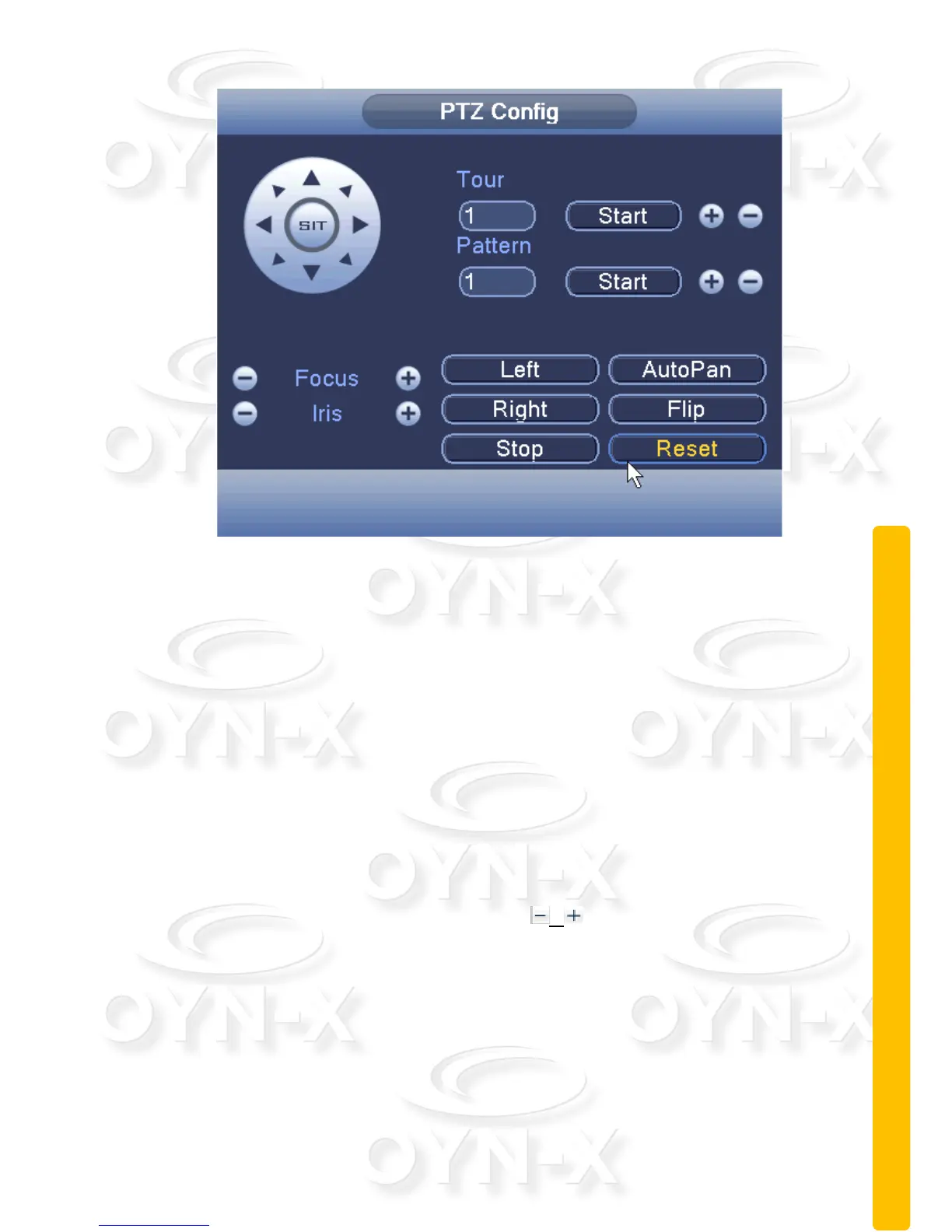 Focus and Iris controls to adjust picture clarity/sharpness). Click on the