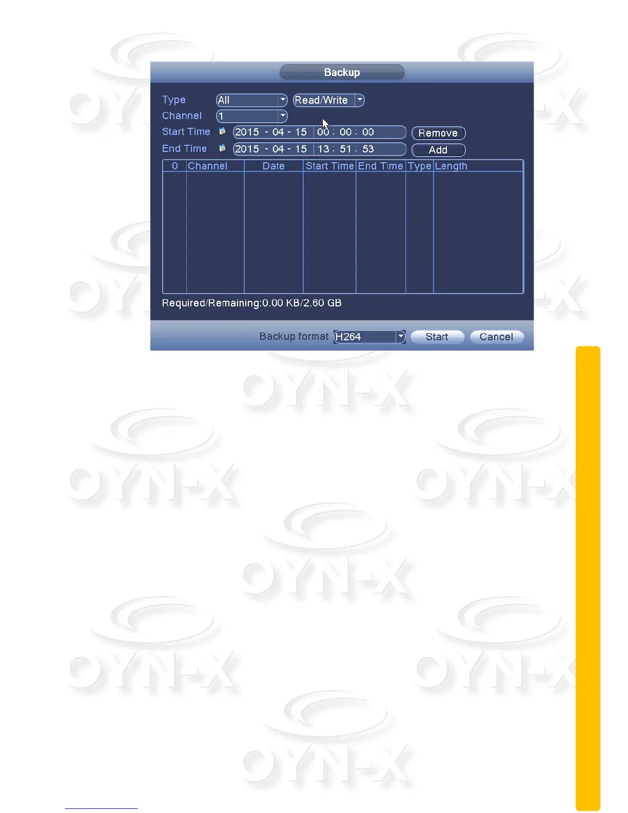[Start / Stop]: After selecting the file and backup format, click to ‘Start’ to