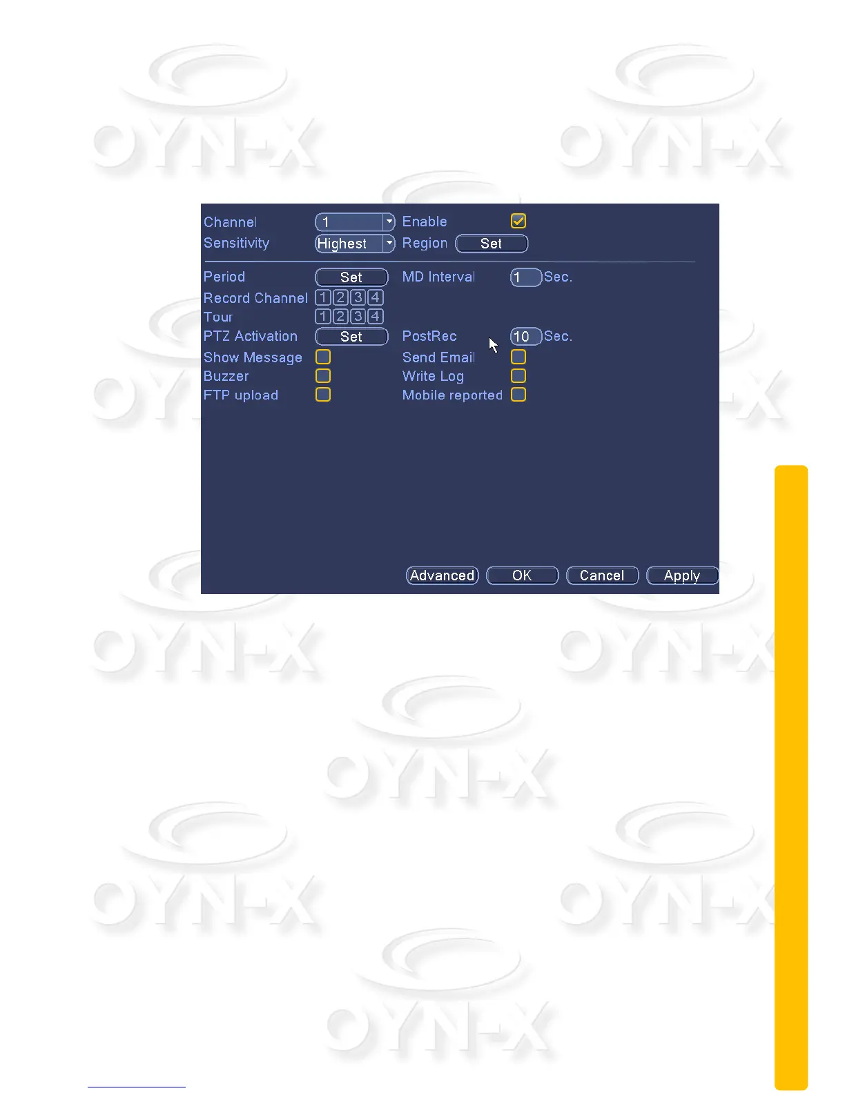 [Sensitivity]: set the sensitivity level to one of six level options; lowest, low,