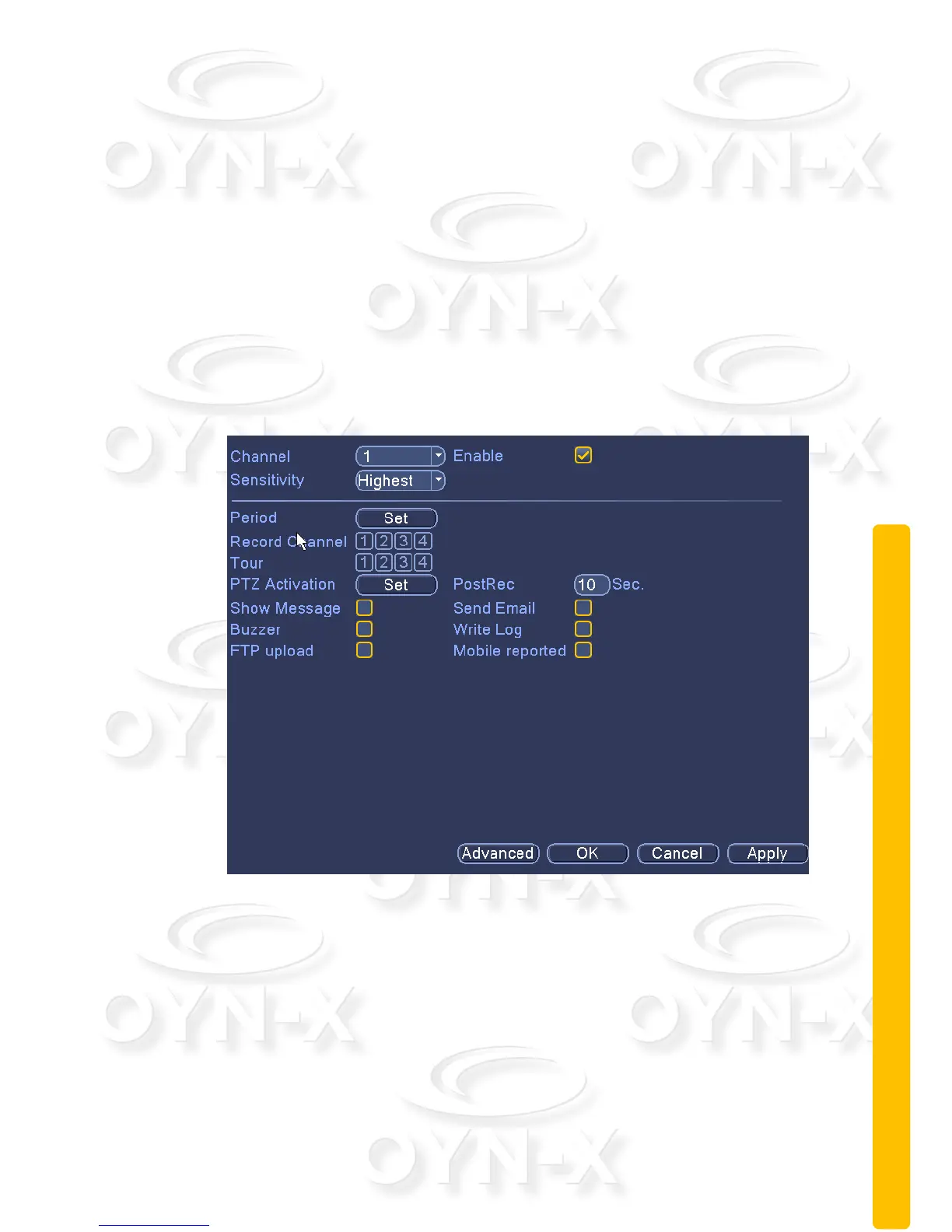 in the same way as you can with the motion dection function (see previous
