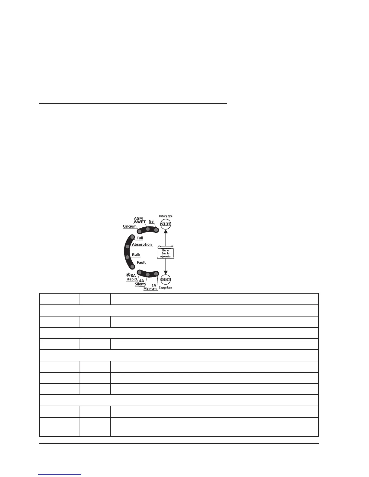 Green ON Indicates which Charge Rate / Charge Mode is selected