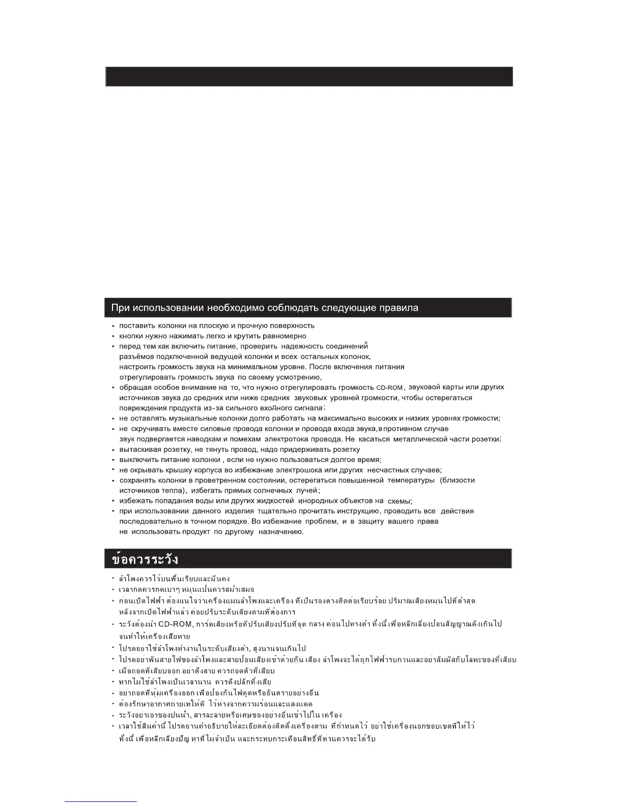 전원을켜기전에는먼저스피커본체와연결부분의착오가없는지를확인하신후스피커의음량을