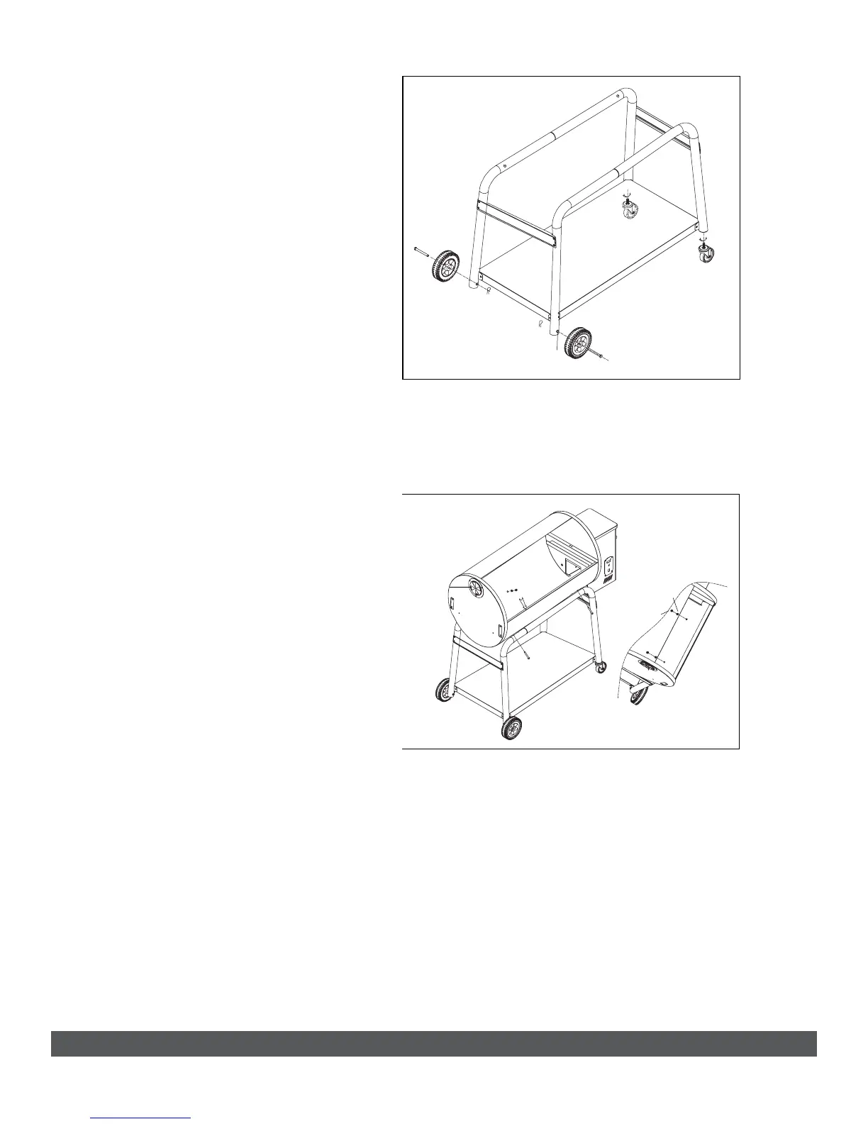 Place the grill on the legs. NOTE: The two wheel legs should be at the same side as the