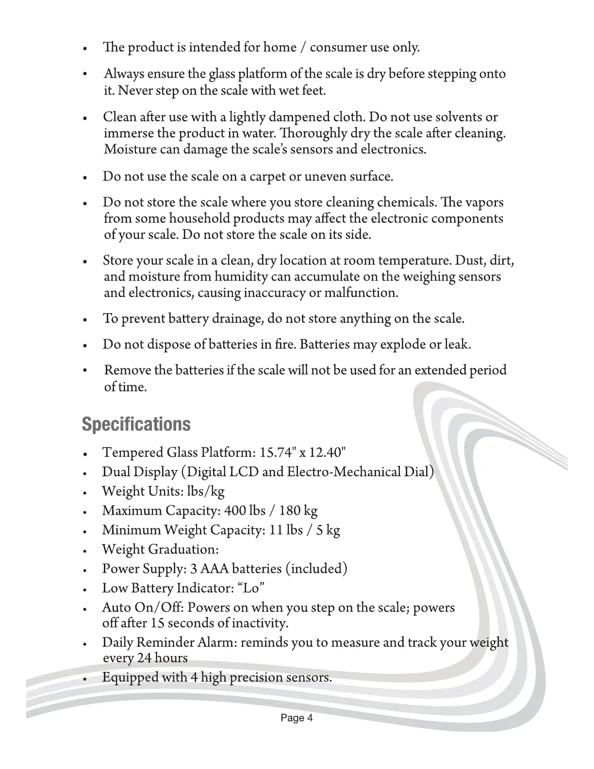 Ozeri ZB19 - Product Specifications; Platform and Display Details; Weight Measurement Specifications; Power, Indicators, and Features