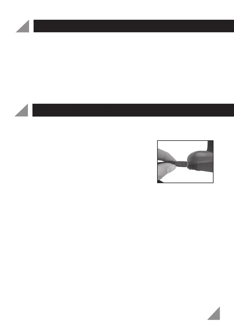 Plug the charging adaptor (9) into a mains