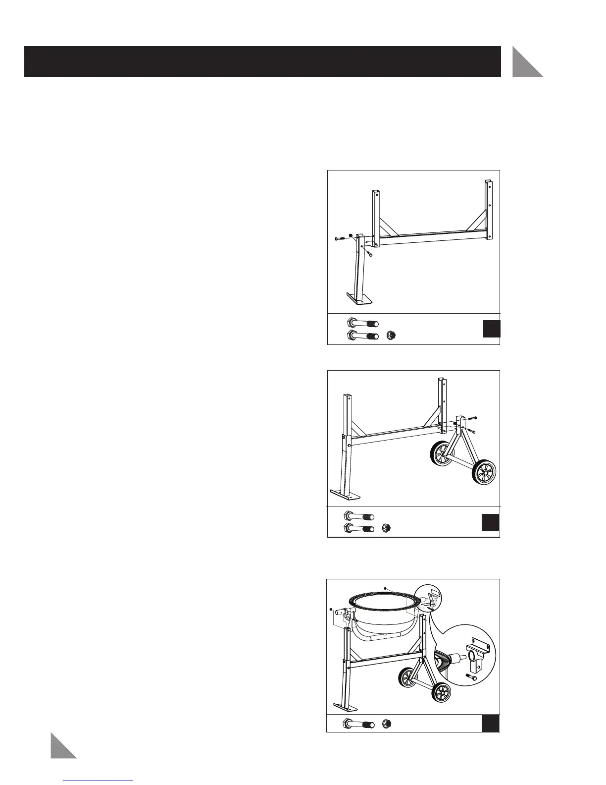 Caution: It is recommended that two people assemble the Cement Mixer.