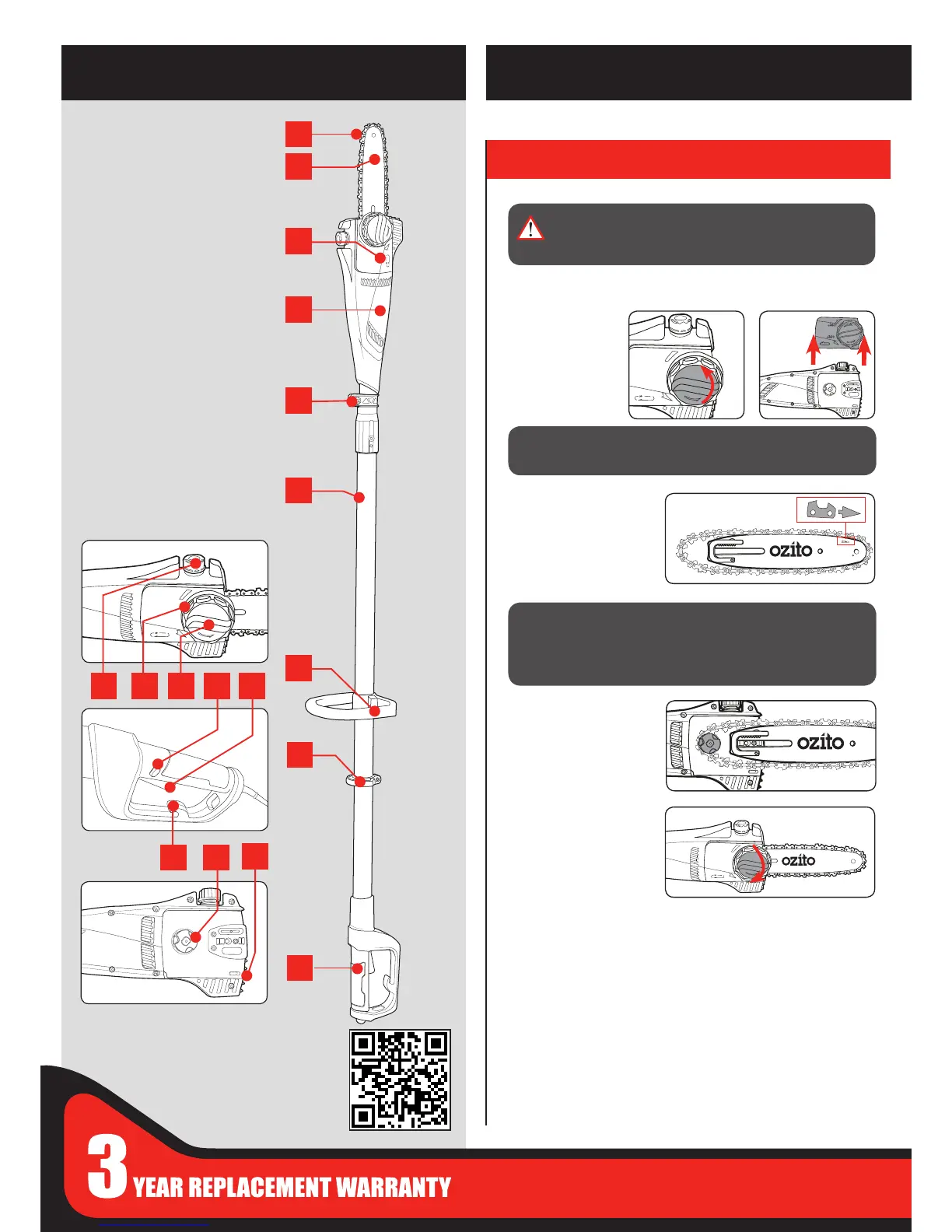 NOTE: Only tighten the chain cover locking knob securely once the