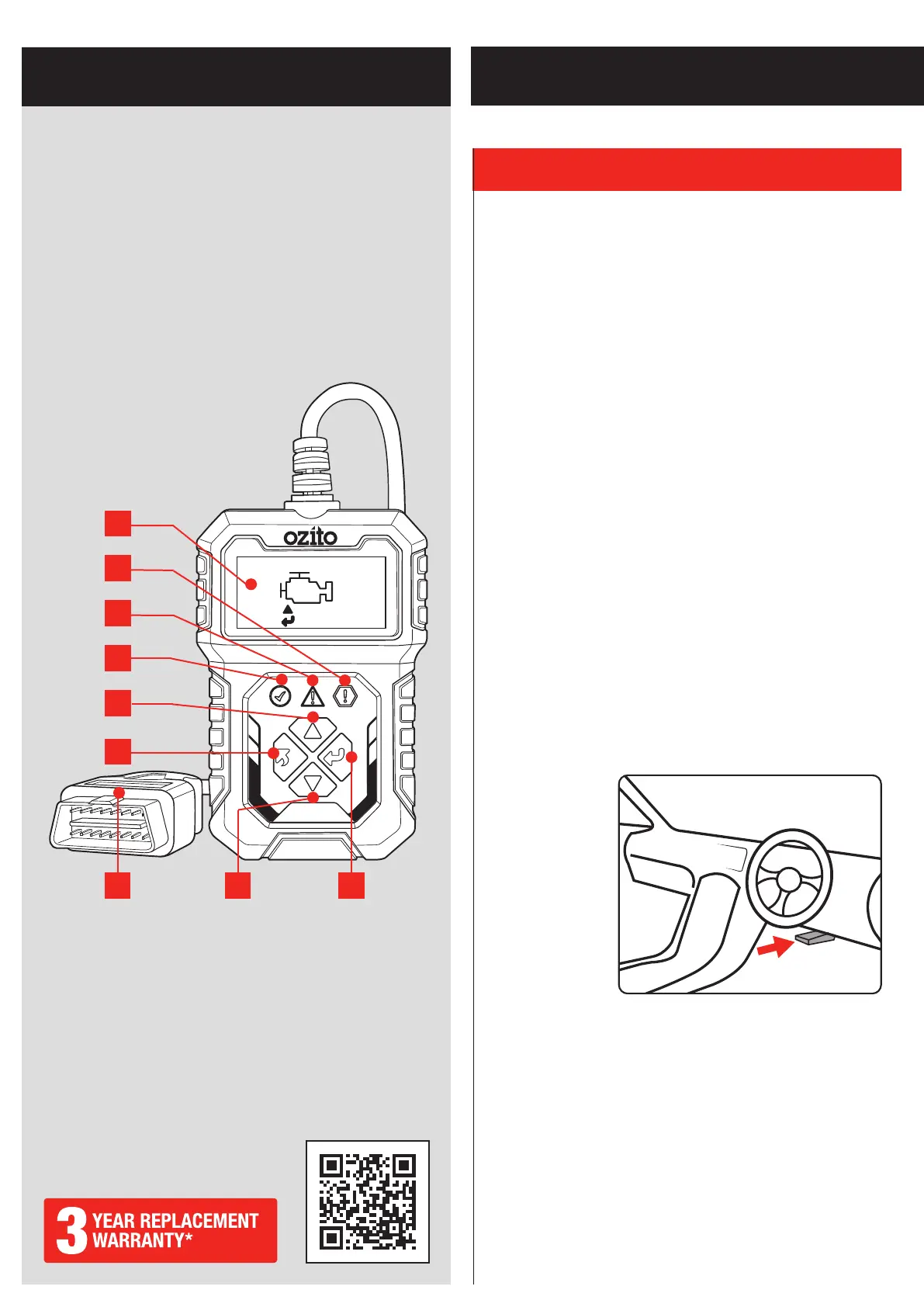 Connects the scan tool to the vehicle’s Data Link Connector (DLC).