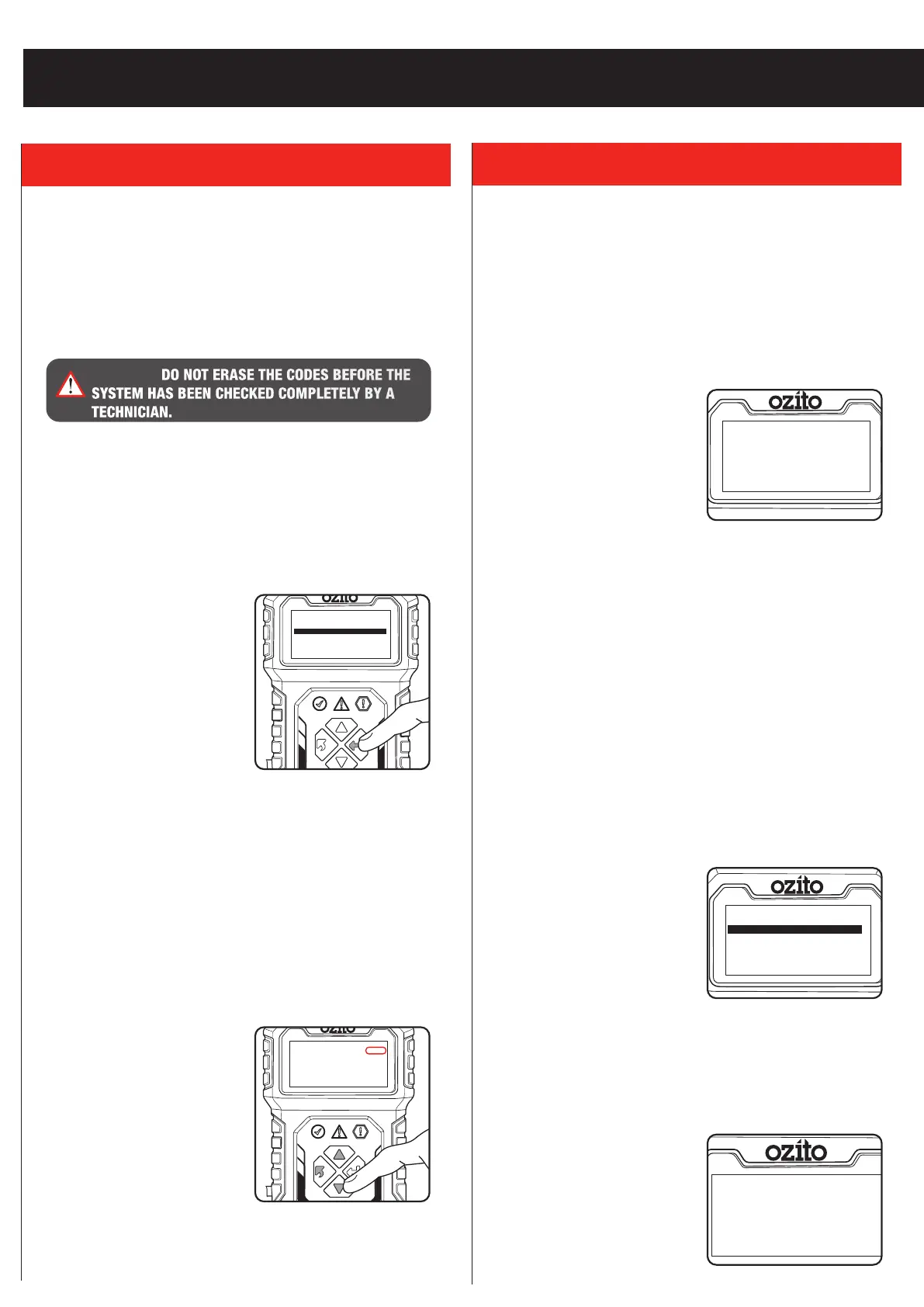 WARNING! DO NOT ERASE THE CODES BEFORE THE
