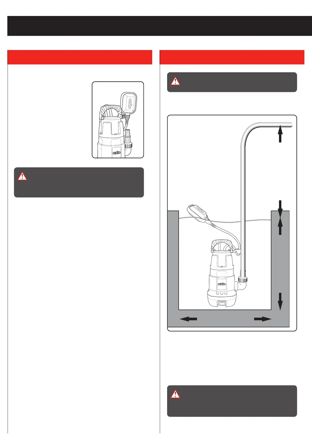 WARNING! TO PREVENT THE PUMP RUNNING DRY,