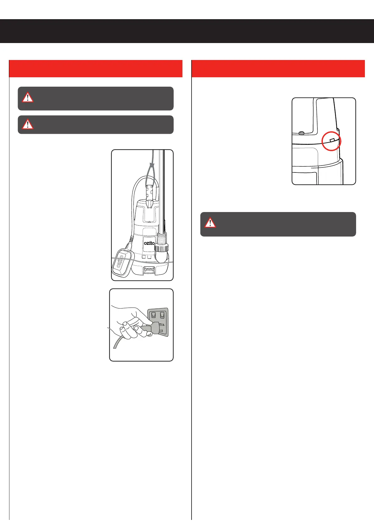 WARNING! BEFORE SUBMERGING THE PUMP IN