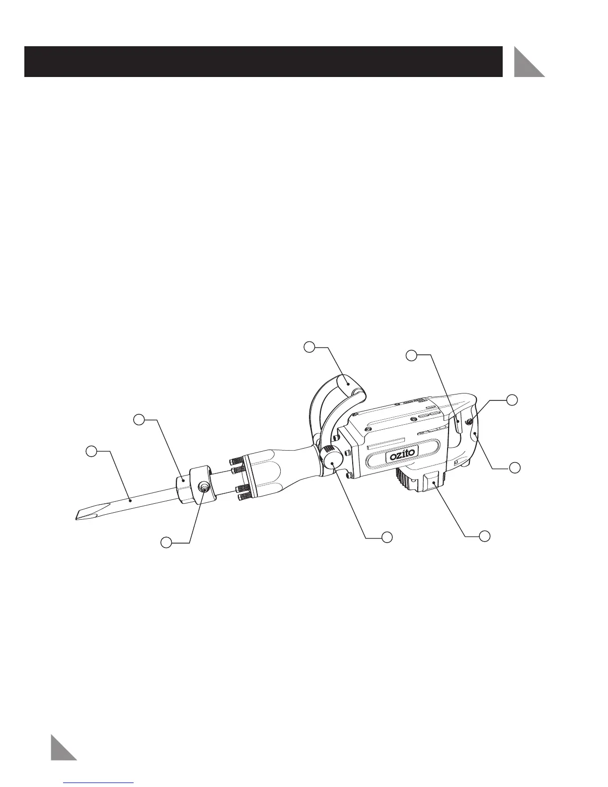 1. 30mm Chisel bit 6. Rear handle with soft grip