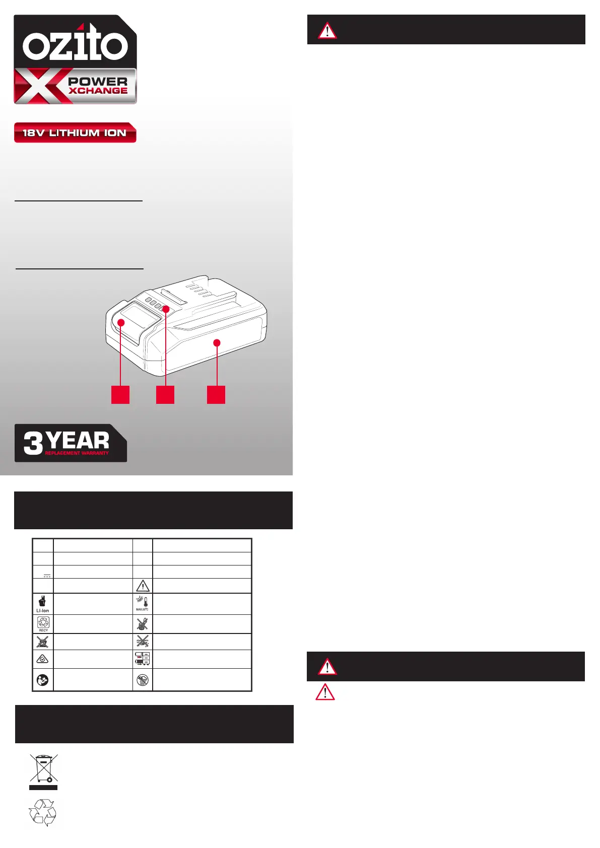 23. Do not use the supplied battery charger to charge other cordless tools. Only charge Ozito Power X Change
