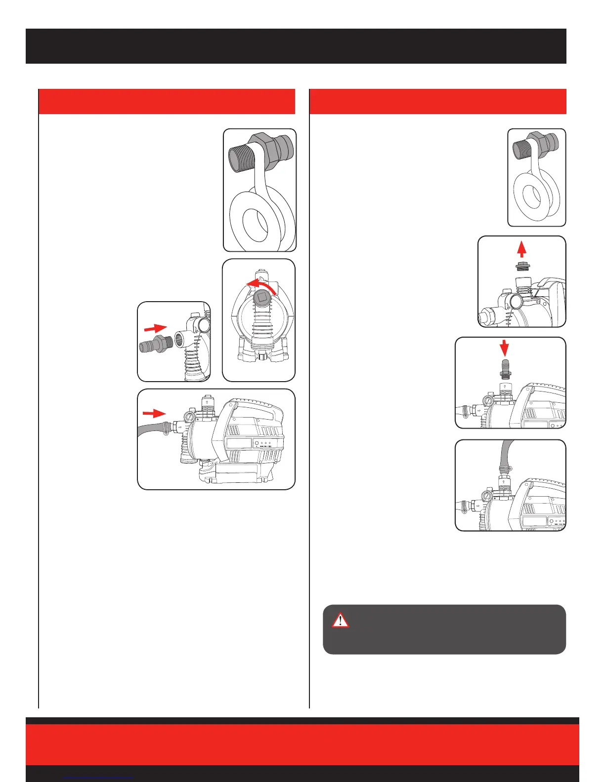 Note: Ensure the discharge hose or pipe is not restricted in any