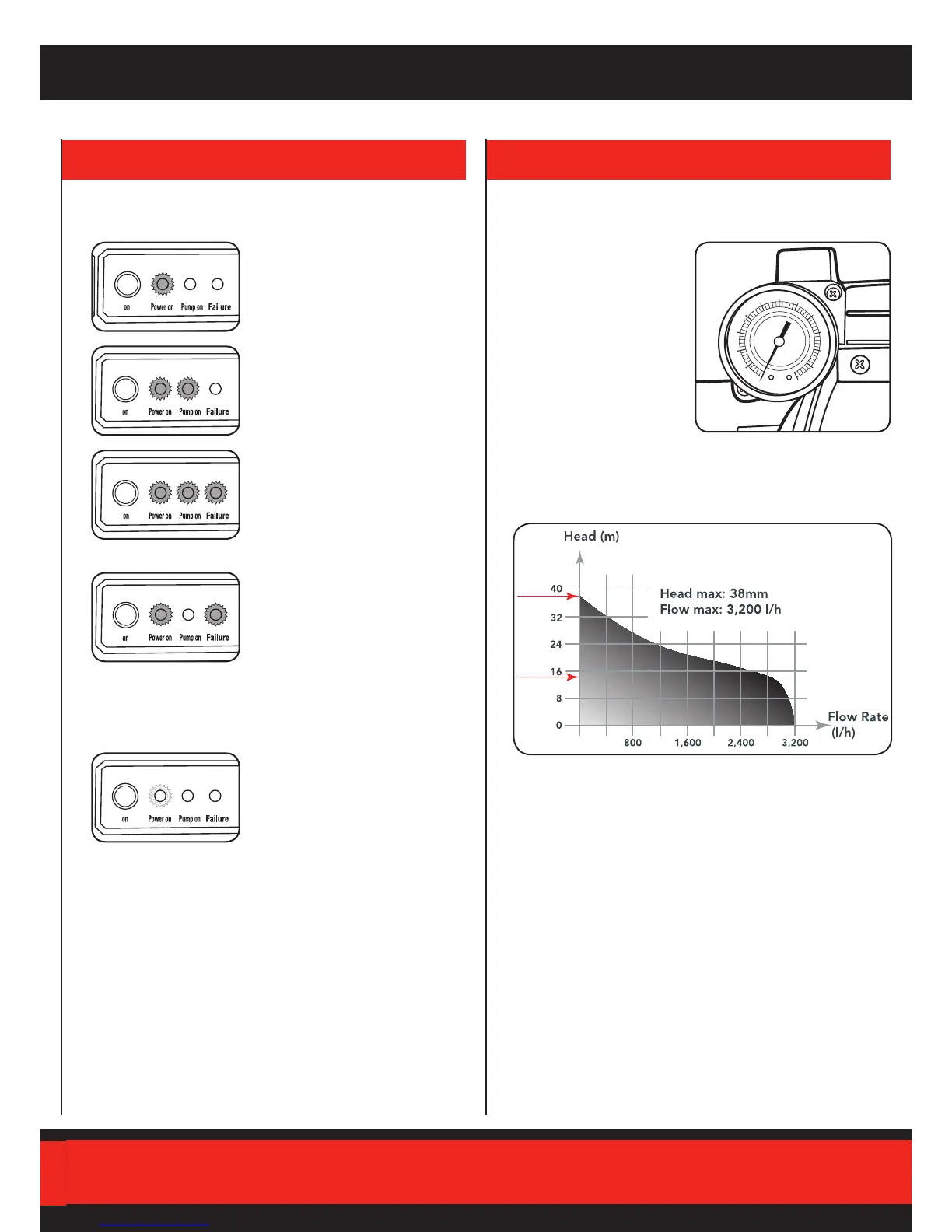 ‘GREEN Pump on’ LEDs solid