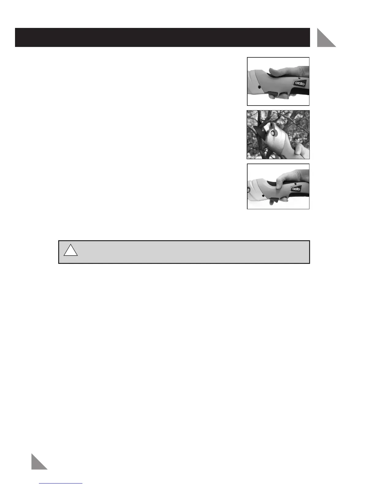 lock-off switch (8) (Fig. 4). The pruner now has its blades