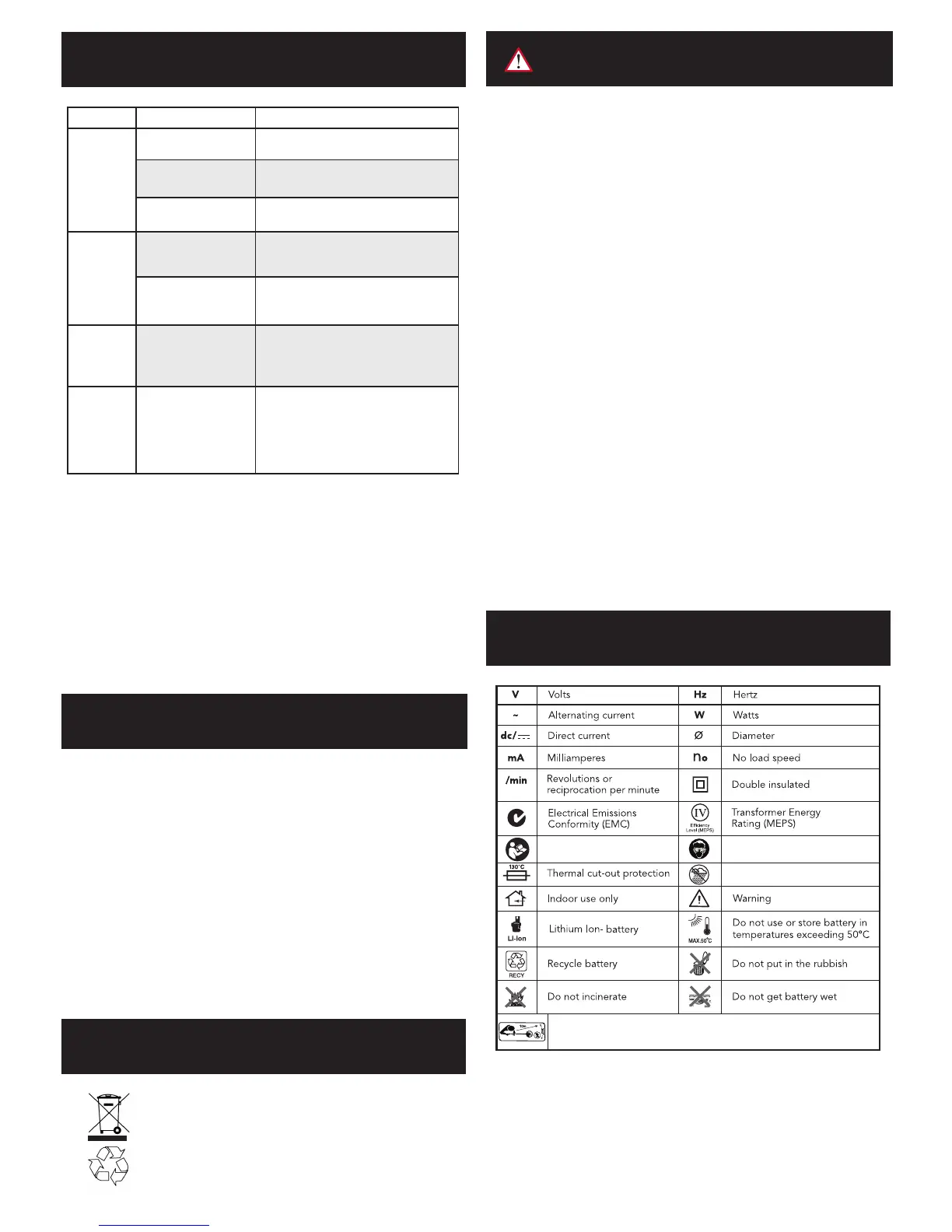 16. Never attempt to open the battery pack for any reason. If the plastic housing of the bat-
