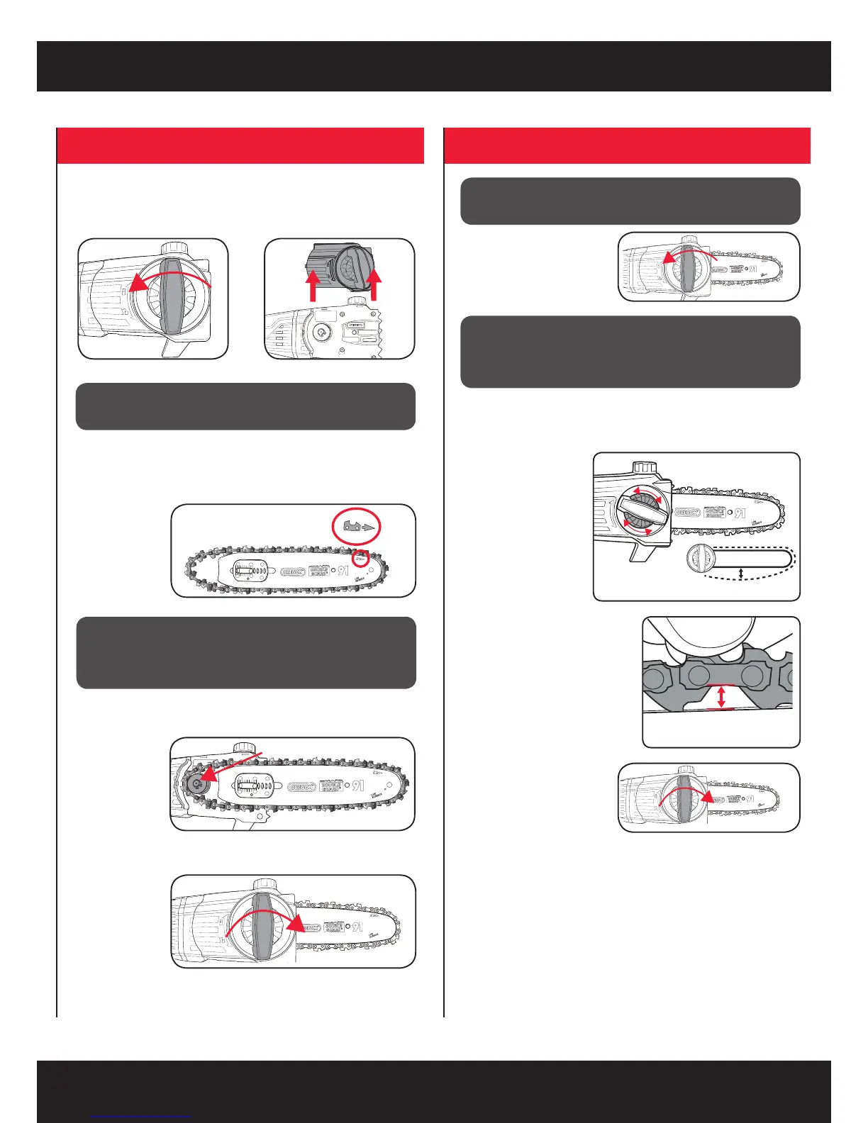 Note: Proper tension of the chain is extremely important and must be