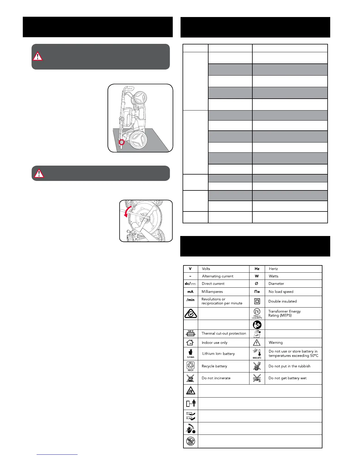 • When not in use, the mower should be stored in a dry, frost-free location, out of reach of children.