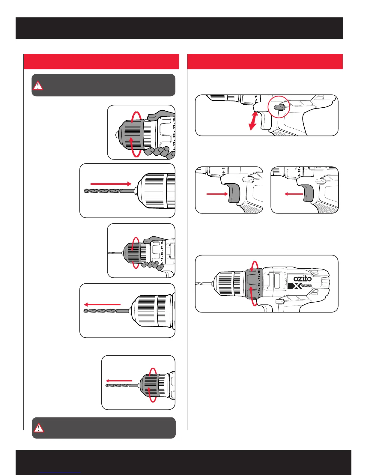 1 For forward rotation, push the fwd/rev lever towards the left side of the drill. For