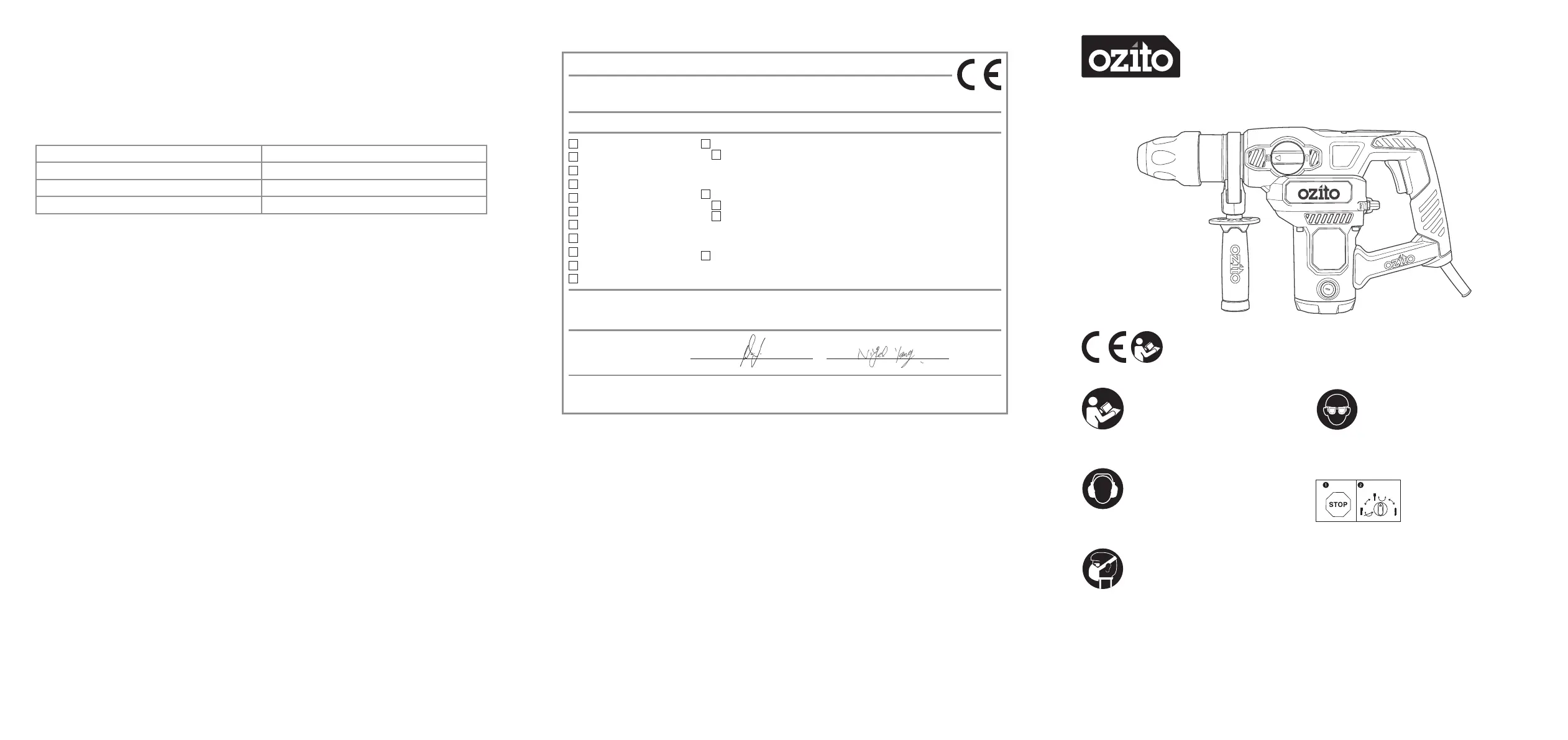 Standard references: EN 60745-1; EN 60745-2-6; EN 55014-1; EN 55014-2;