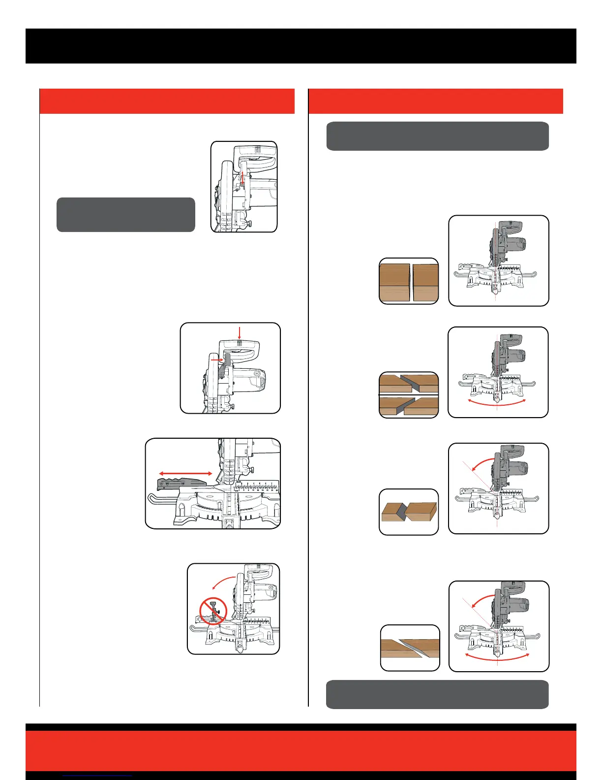 Note: For Bevel Cuts ensure the rear fence is adjusted for