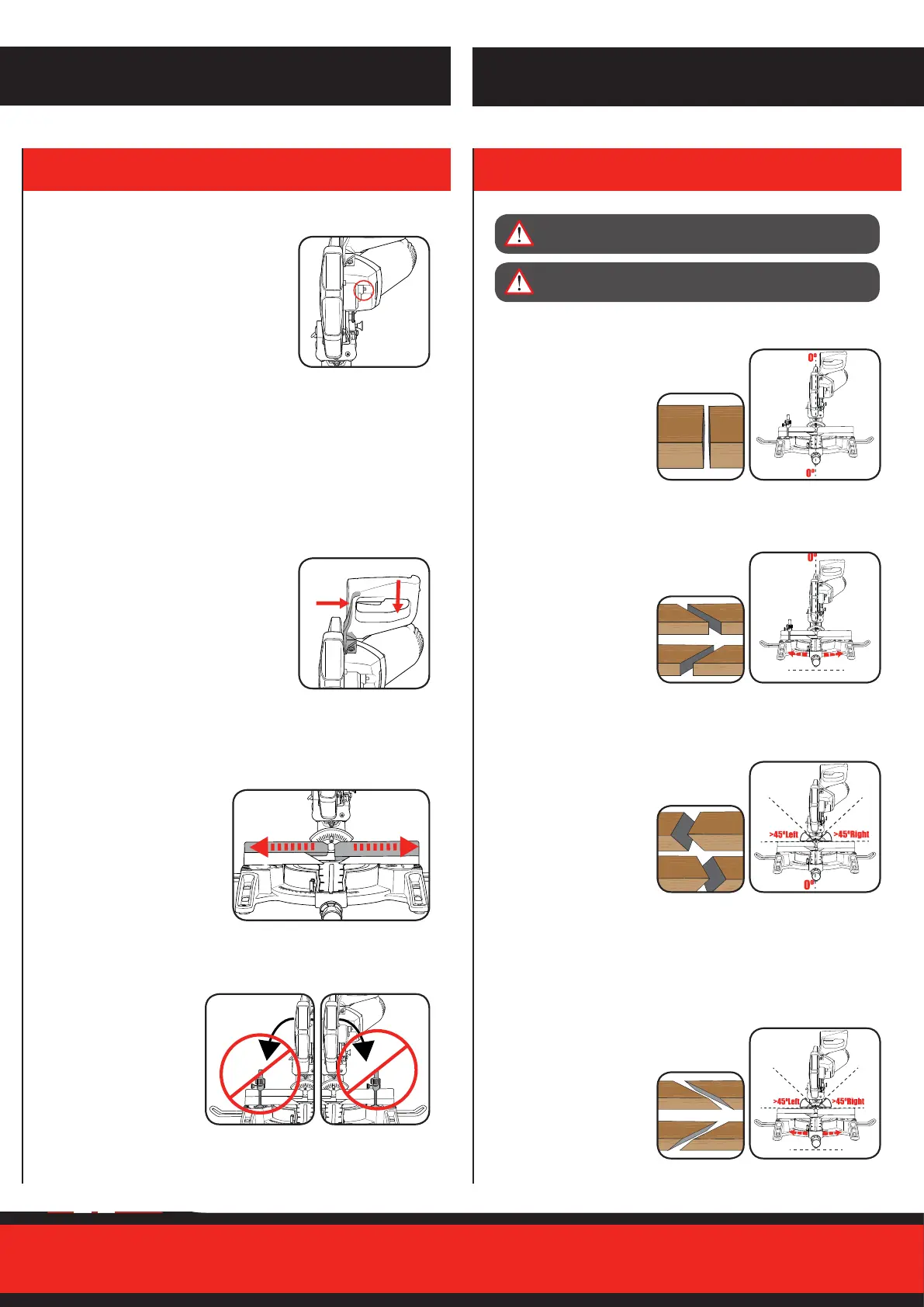 saw from rotating. Depress and hold the