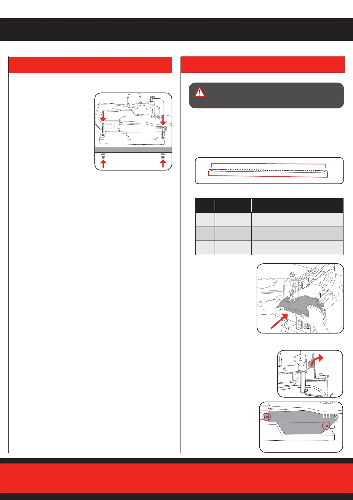 scroll saw from tipping while in use. A minimum 19mm thickness is