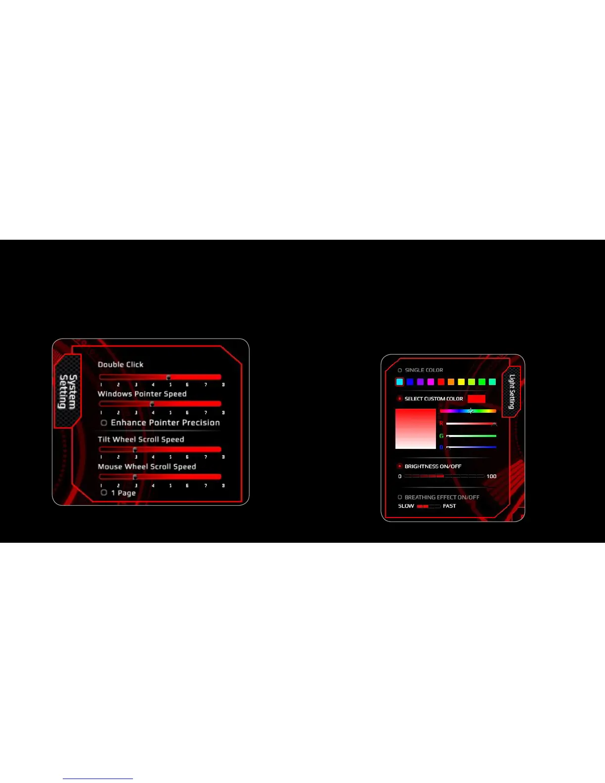 from 0 to 100. Or Choose Breathing Effects ON/OFF and select