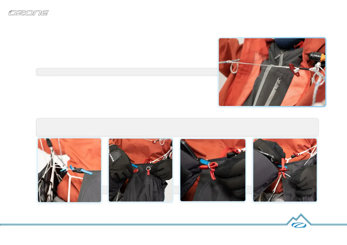 thepodofthelefthandside(blue).Passtheredloopfoundonthesideoftheparachutecontainerthroughthemetalringofthelefthand