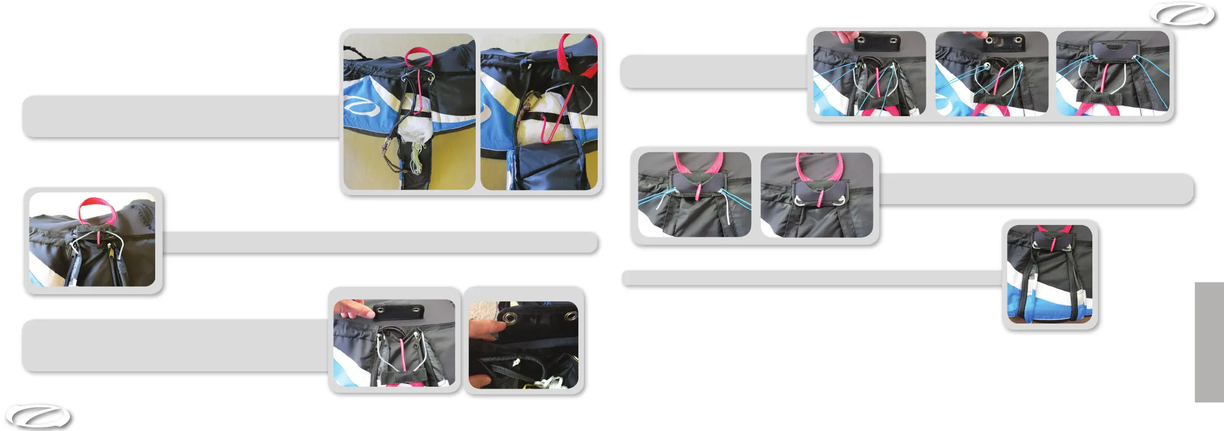 Öffne den Reserveschirm Container hinten am Gurtzeug, indem du die