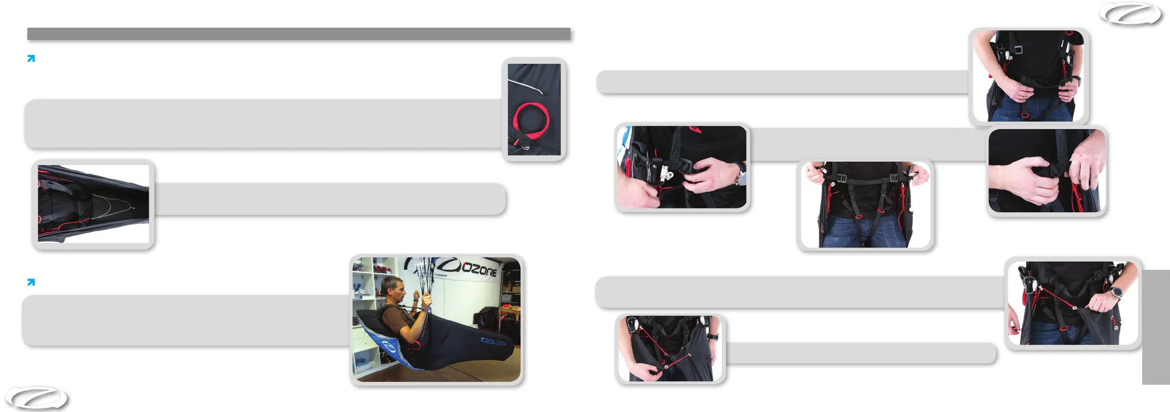 Wenn du das Gurtzeug anziehst, schlüpfst du zuerst in die Schultergurte und hole den Bein- /