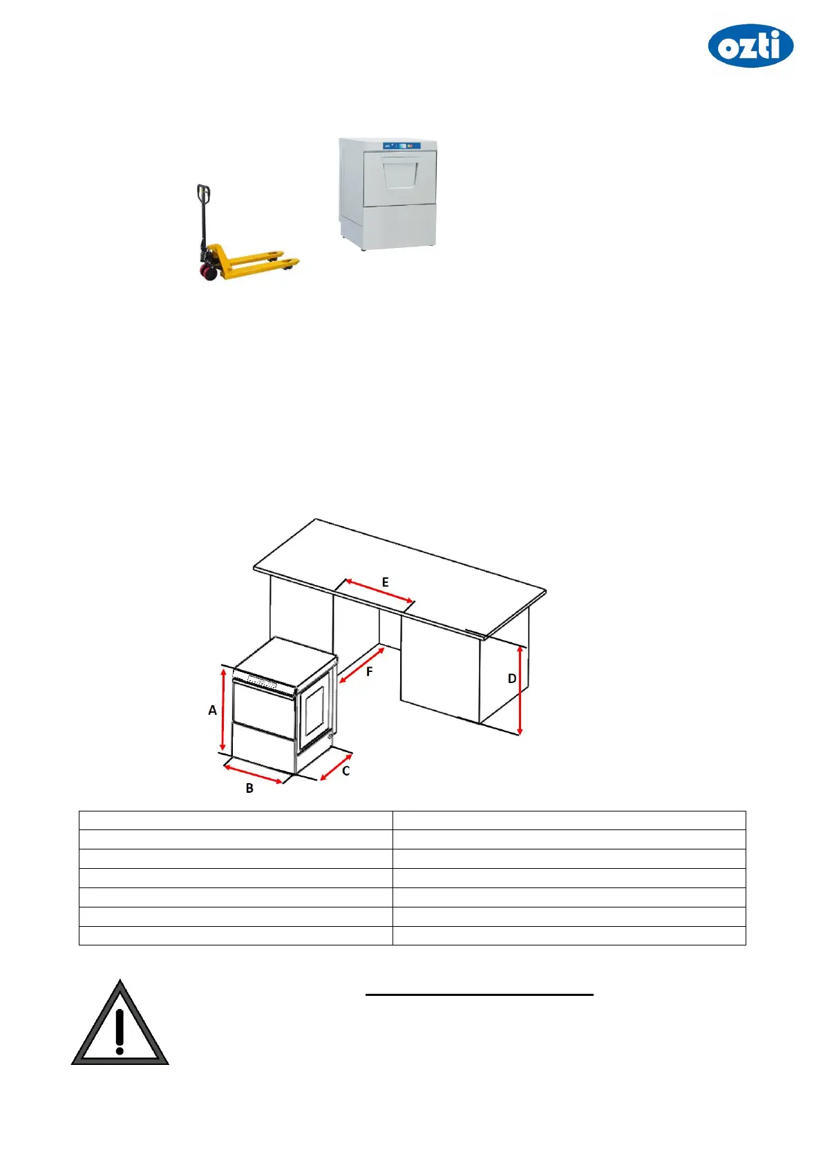 Transportation should be carried out by inserting the forklift forks under the machine.