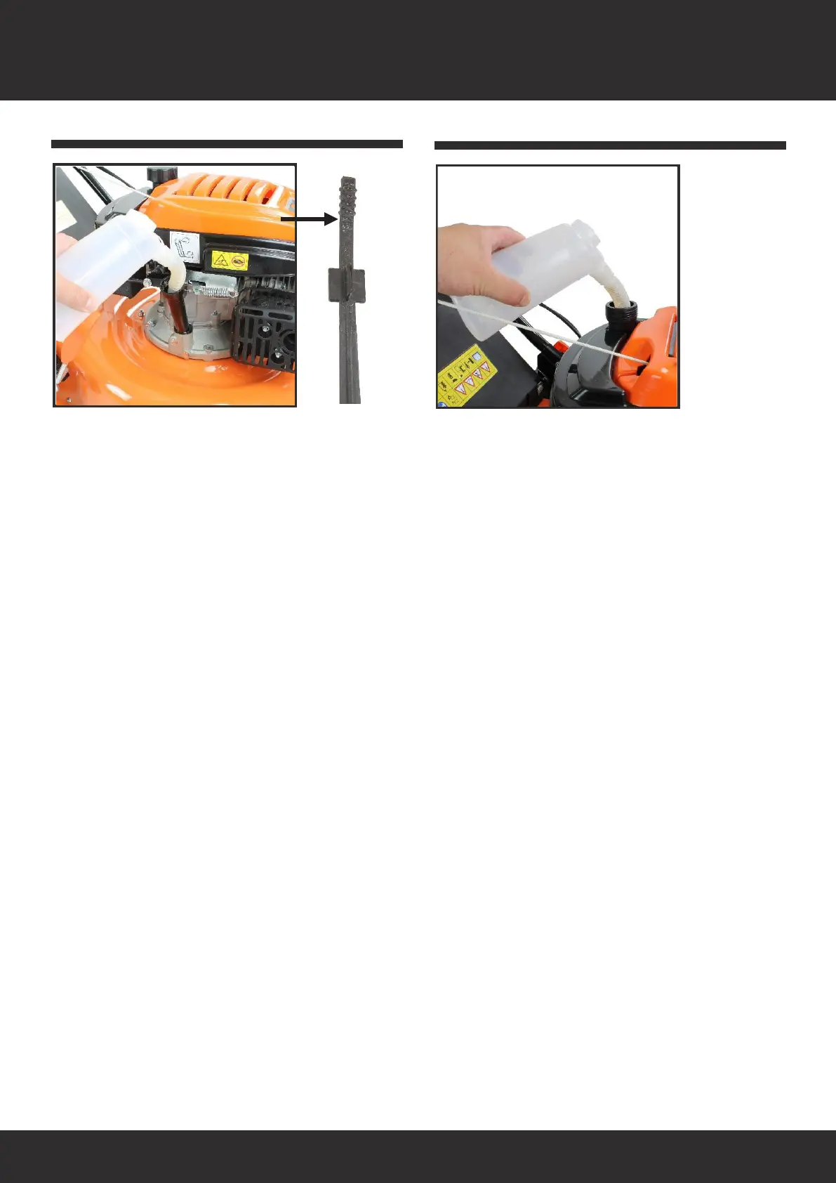 5. If the oil level is too low, add SAE 30 engine