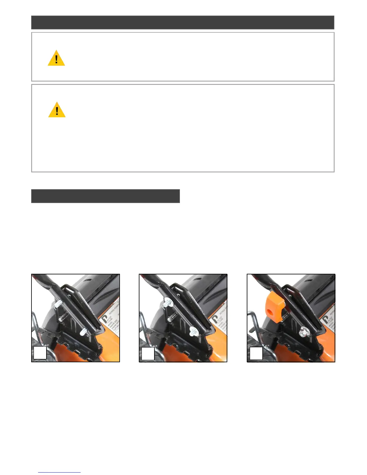 3.0 Attach the lower handle to the deck of the mower by inserting the 2 bolts (1).