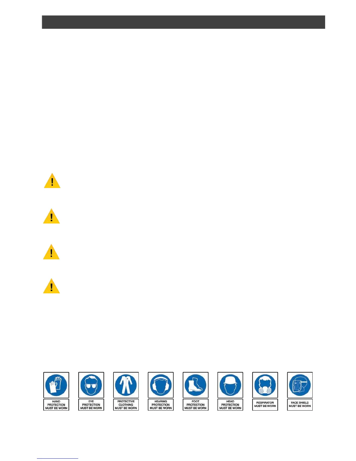 1.6 Some or all of the following - warning signs, symbols and/or PPE pictograms may ap-