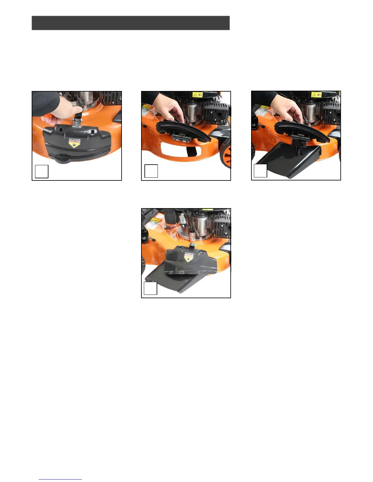 6.31 Lower the side discharge flap so it rests on the top of the side discharge chute (1).