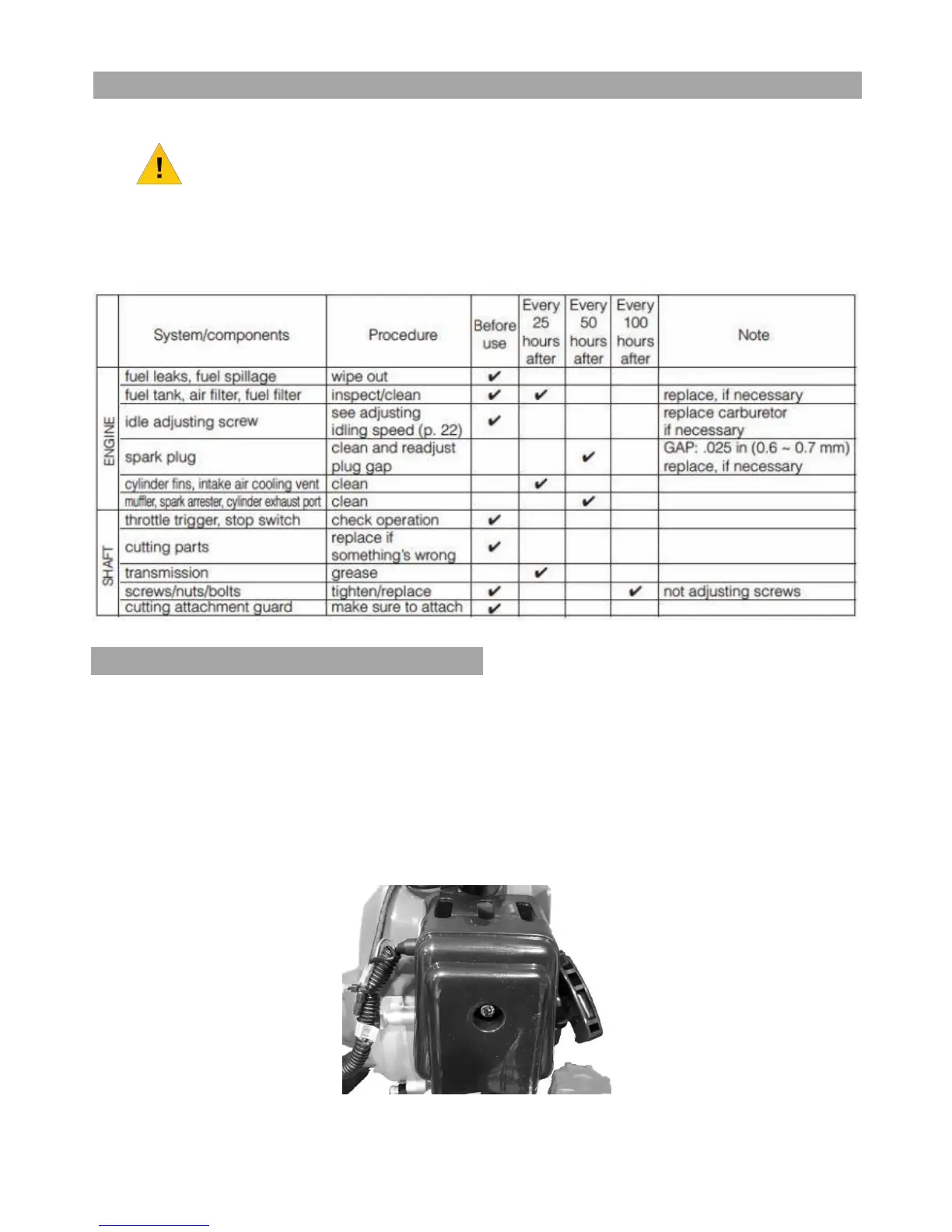 ALWAYS stop the engine and unplug the spark plug cap before doing any repairs or