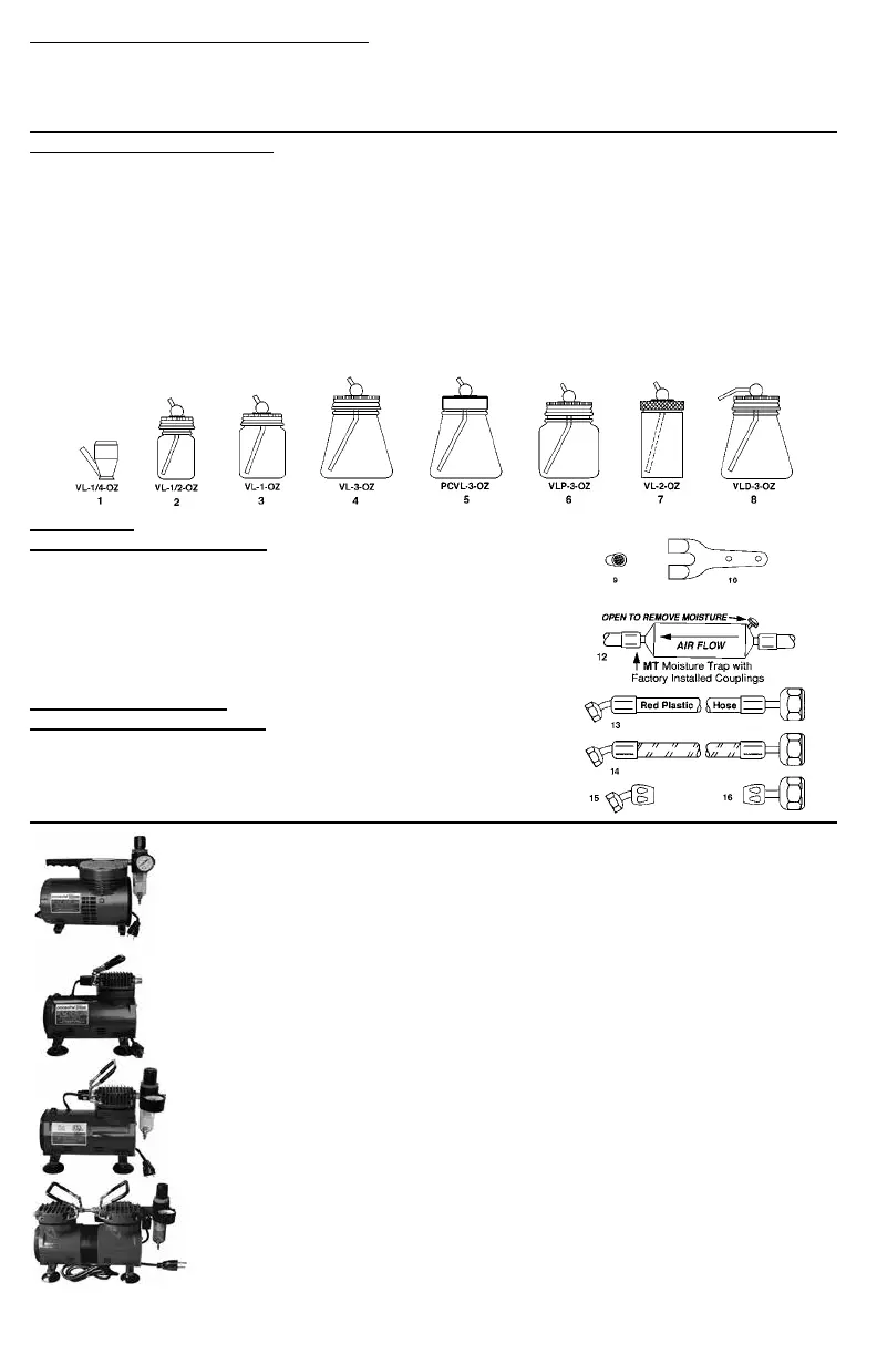 aerógrafo que se utilice. El modelo D500 de Paasche es un compresor de pistón sin lubricación.