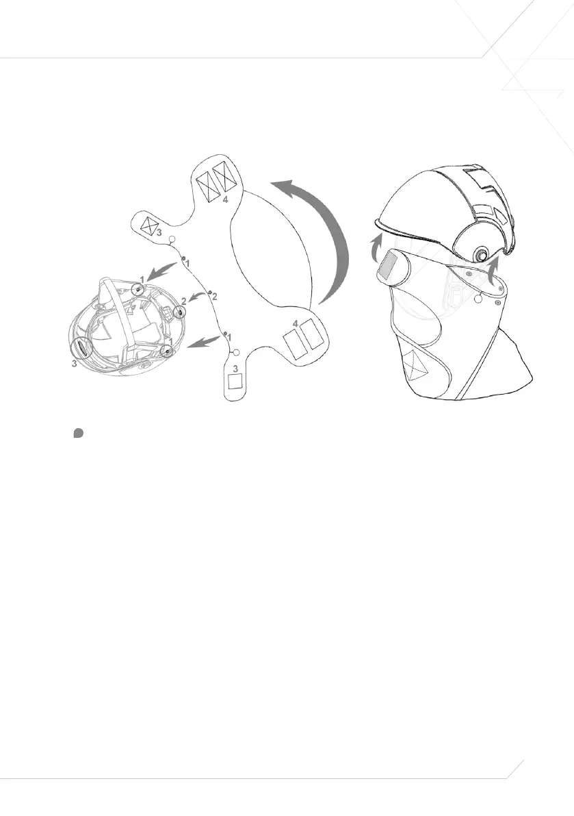 helmet using the Velcro fastener on the inner front part of the shell (see number