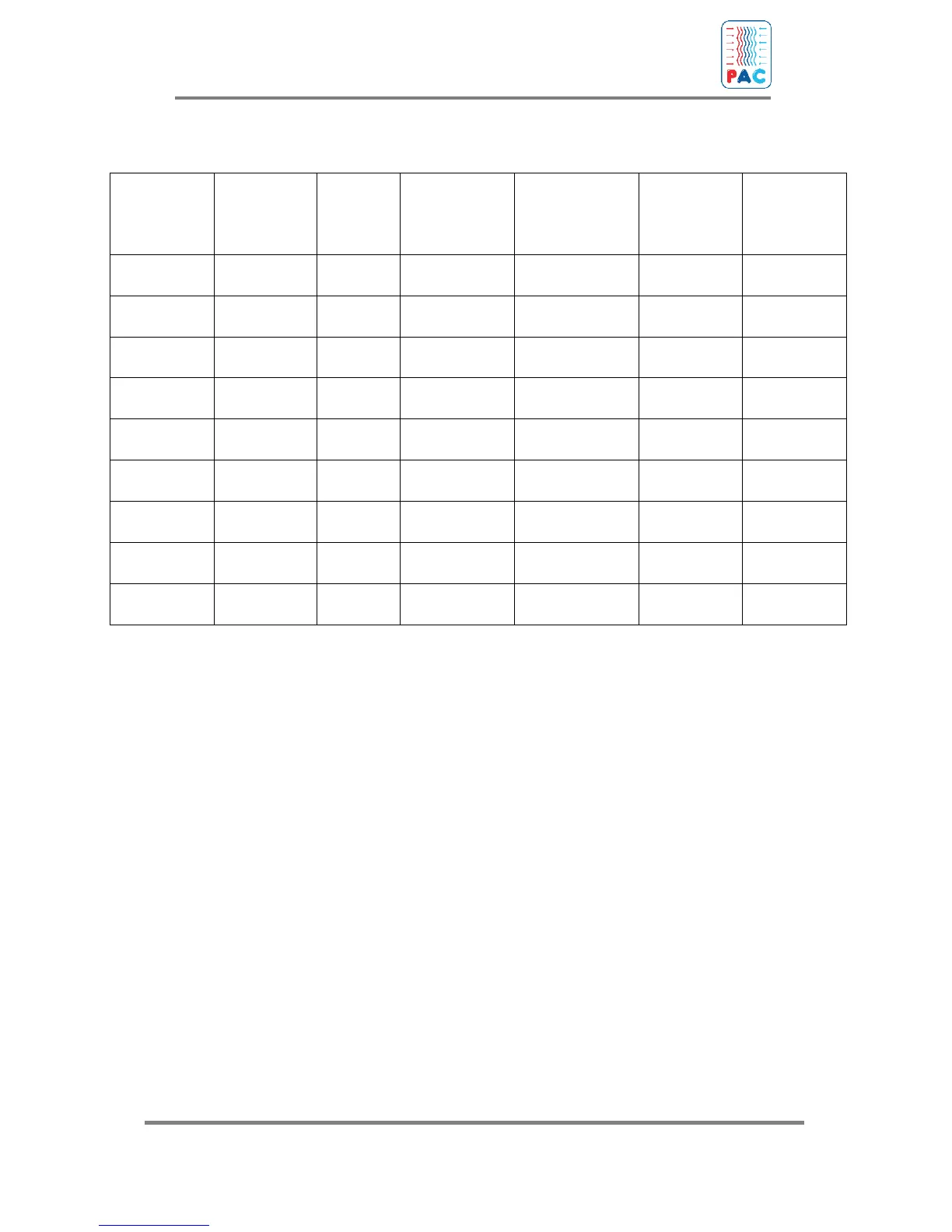 loaded weights of all PAC Fre-Heaters are listed in Table 1.