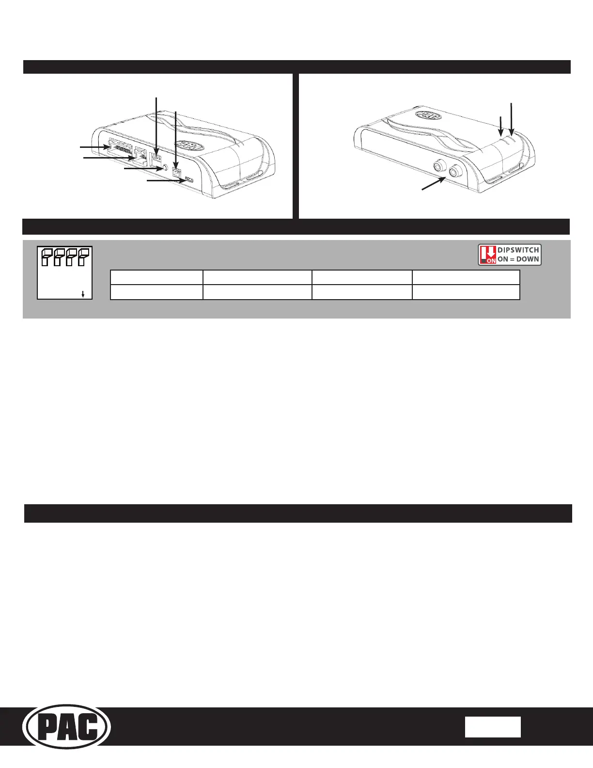 a. Set DIP switch 2 on (down) to lower the RCA output voltage to 4v. Leave DIP switch 2 off (up) to keep the RCA output