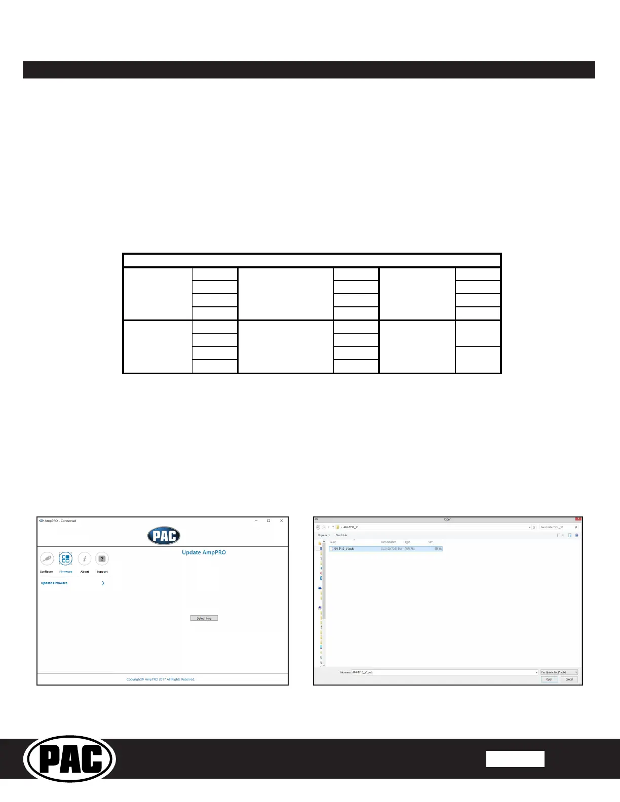Connect the interface to your PC and select "Firmware", then “Update Firmware”. Now select “Select File”. Finally, browse to